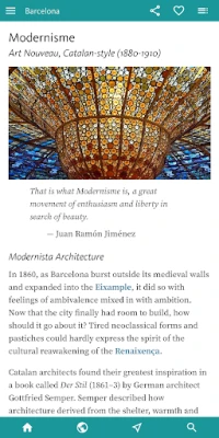 BARCELONA, the new app in the Art & Culture series, is something different in tourism: a cultural travel guide that offers comprehensive, expert coverage of all the sights and attractions, all the things to do and see, complete practical information and detailed maps.
