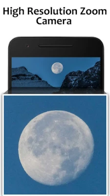 The app is an image zooming tool with real-time image processing. Use this application as a real telescope. Shoot photos and videos both daytime and nighttime.